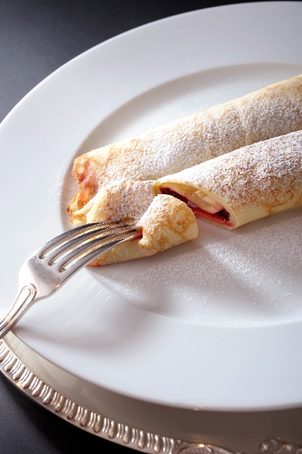 クレープのような生地にオーストリアのフルーツのコンフィチュールをはさみました。