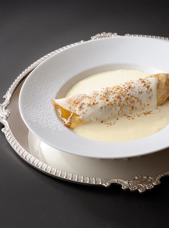 なめらかな口あたりの国産栗のムースを薄く伸ばした生地で包みこみ、